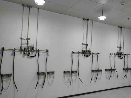 1.氣瓶間內壓力差調低顯示屏與實驗性內的氣路終端門店內用SS316LBA管做出連結,管內外層晶亮度為Ra<0.4umBA級管。